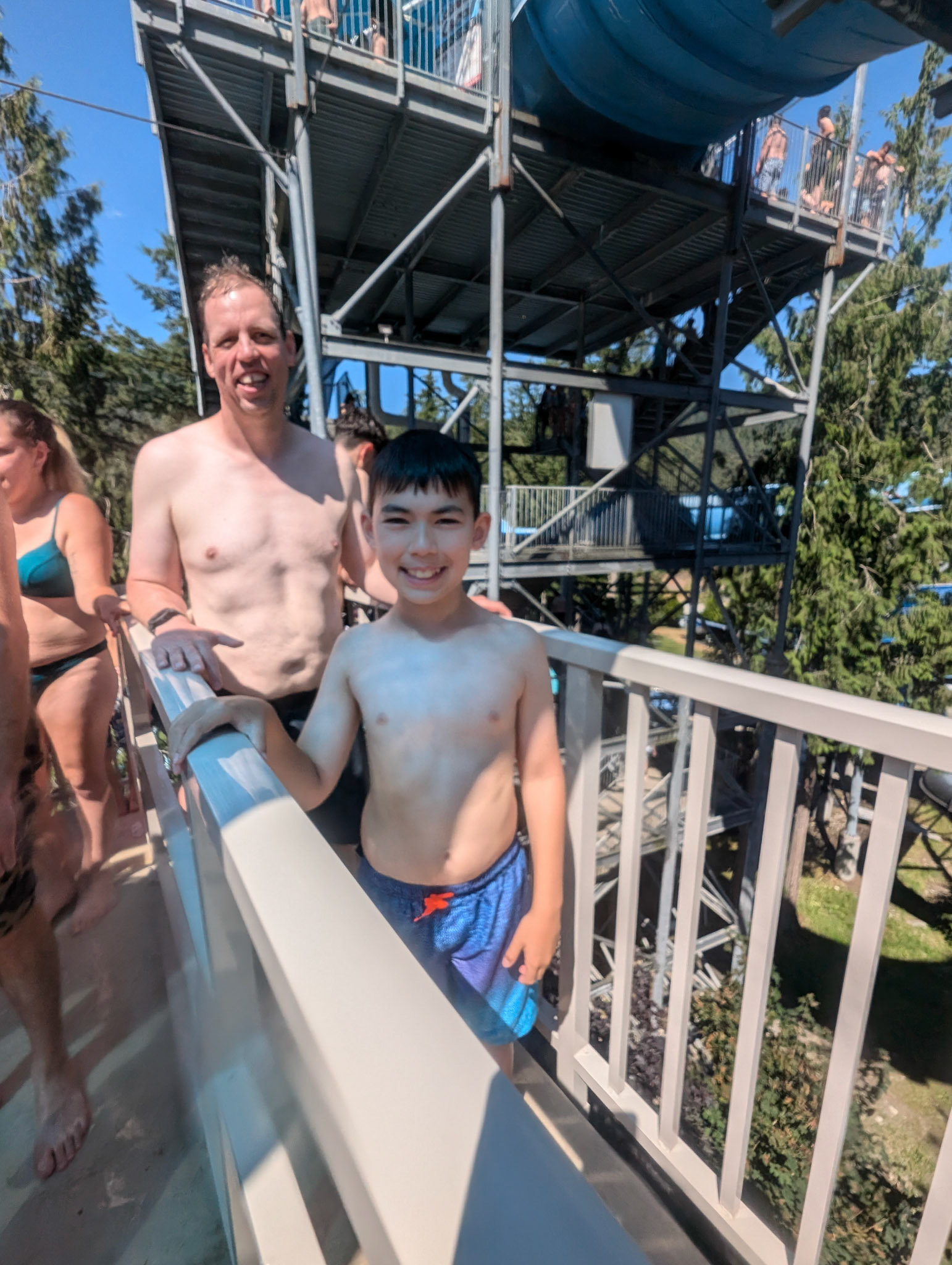 昨天我感觉玩的是心跳,今天我的体验感觉,玩得是刺激!总之两者对于我来说,都太吓人了!😂这次,孩子们10点进场开玩,硬生生的是玩了7个多小时啊!这次娃们,是彻底把老母亲我给玩废了!很多玩水的项目,都是需要排队扛着游泳圈,登上四五层高的楼梯,考验的不光是玩时的惊喜刺激,还有体力!就这样玩了几个小时后,我感觉自己因太多次的尖叫嘶吼,有些失声了!孩子爸是足够强壮💪,不光是陪着孩子们,体验高难度玩水项目一次又一次,更是几乎玩遍全场, 厉害啊!