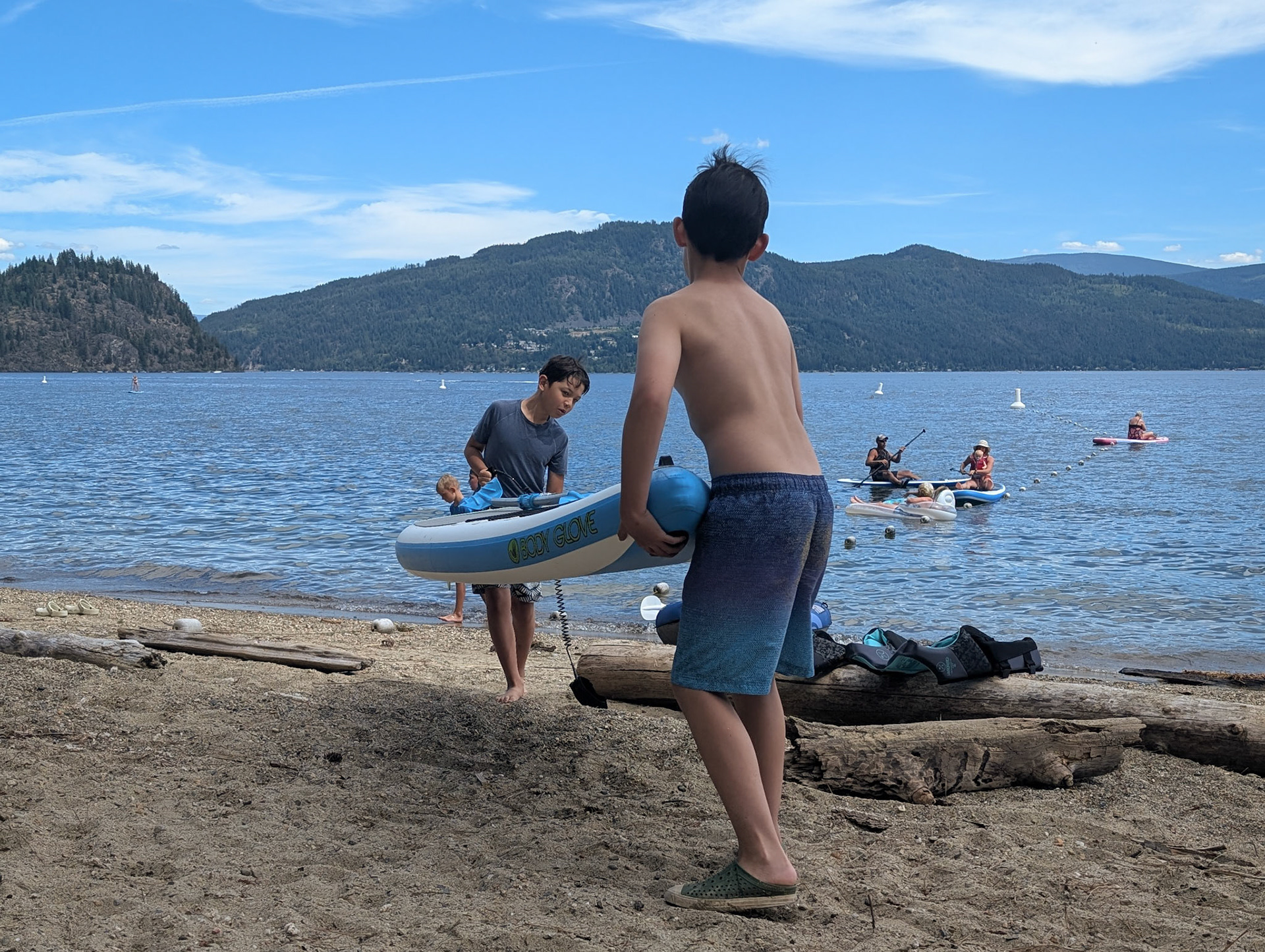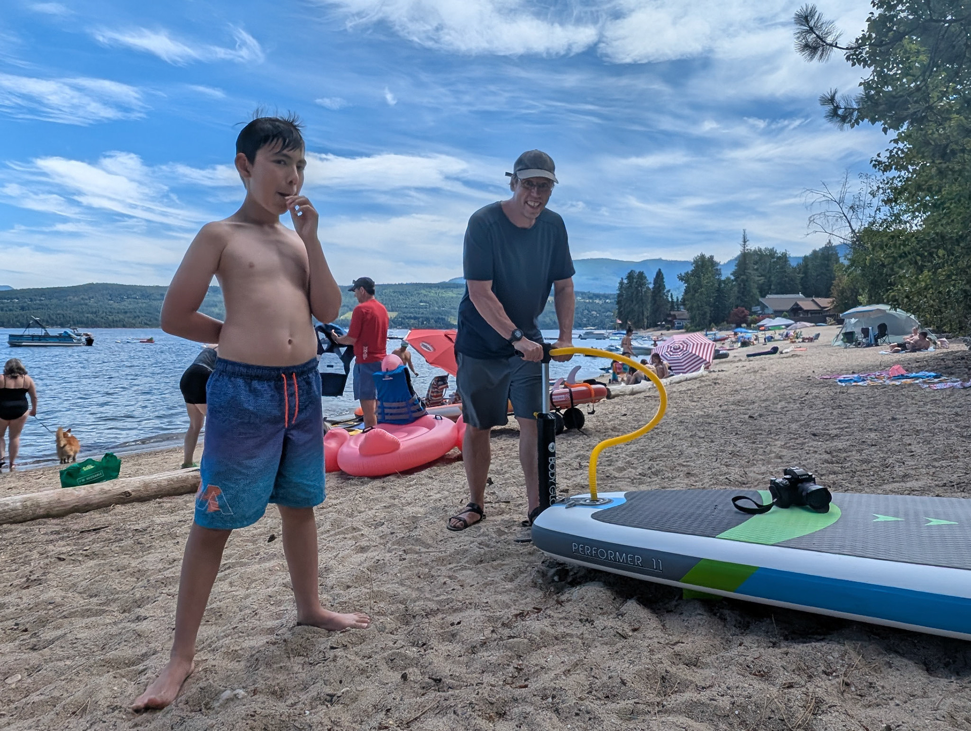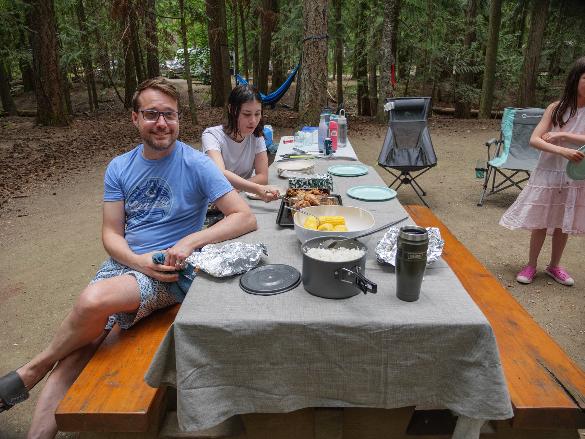 Day 2 of our trip we got a call from the mechanic around 10am letting us know that they needed to order a part from Edmonton so we couldn't get the truck till the next day. So I quickly rented a car and we drove an hour to the Shuswap lake where we were meeting our friends for camping. Spent the afternoon at the beach then had dinner at the campsite and a cake for Josephine's bday. We had to drive back to the RV park in Kamloops that night but it was a good day and much needed after the stress from the truck breaking down on the first day of the trip.
