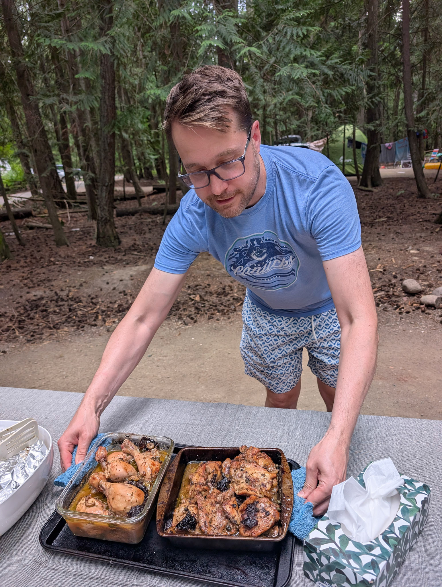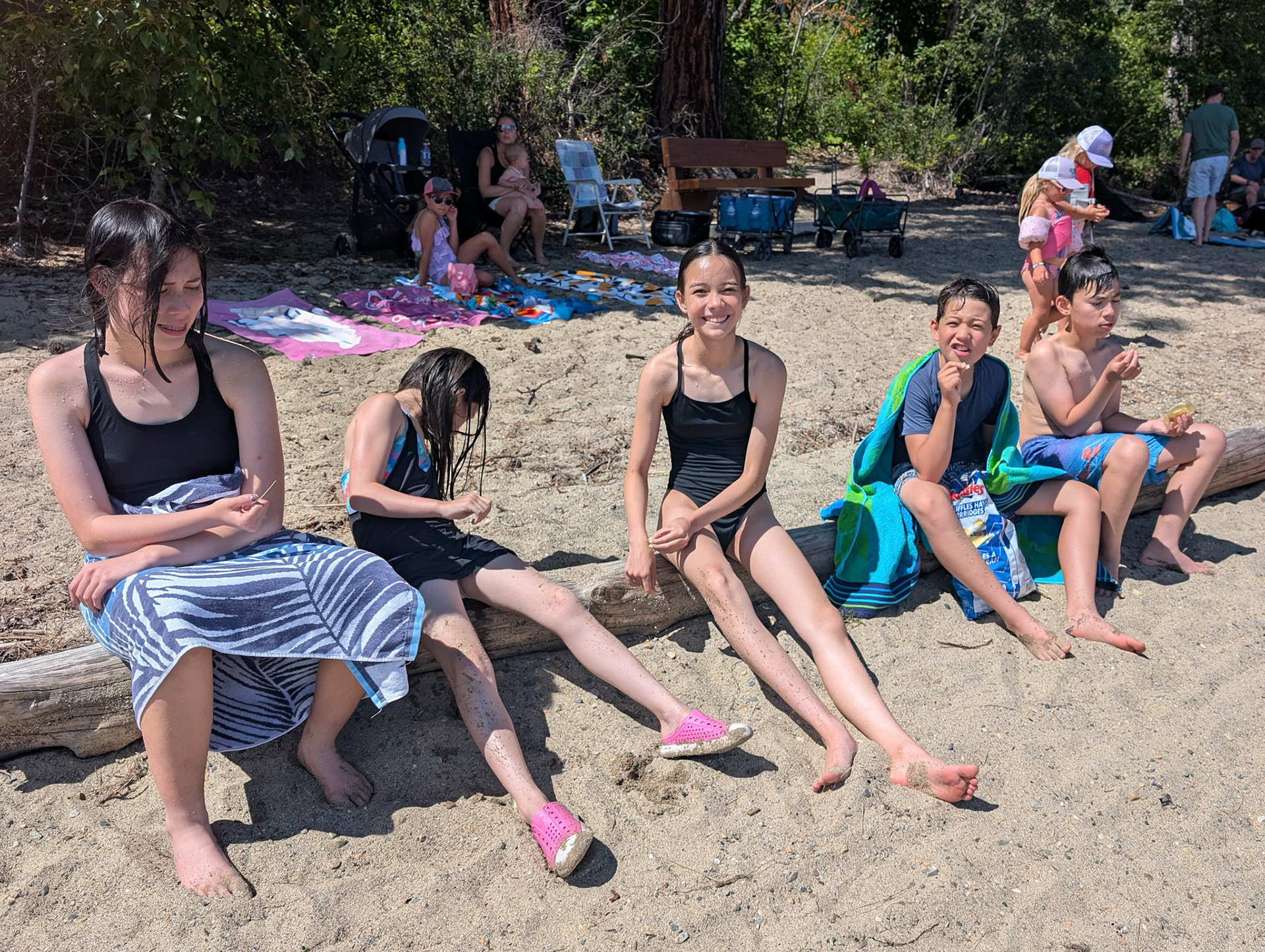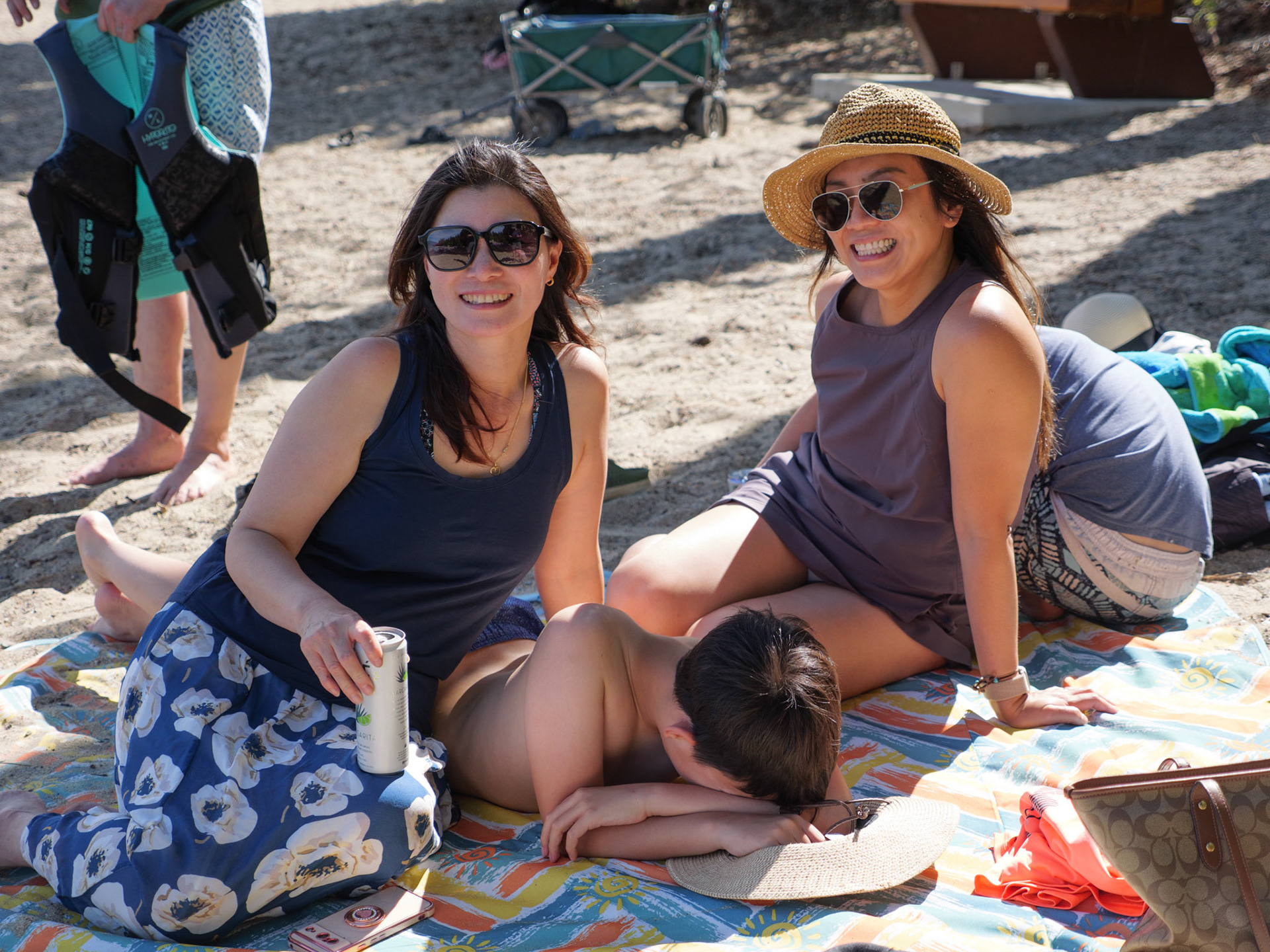 Day 2 of our trip we got a call from the mechanic around 10am letting us know that they needed to order a part from Edmonton so we couldn't get the truck till the next day. So I quickly rented a car and we drove an hour to the Shuswap lake where we were meeting our friends for camping. Spent the afternoon at the beach then had dinner at the campsite and a cake for Josephine's bday. We had to drive back to the RV park in Kamloops that night but it was a good day and much needed after the stress from the truck breaking down on the first day of the trip.