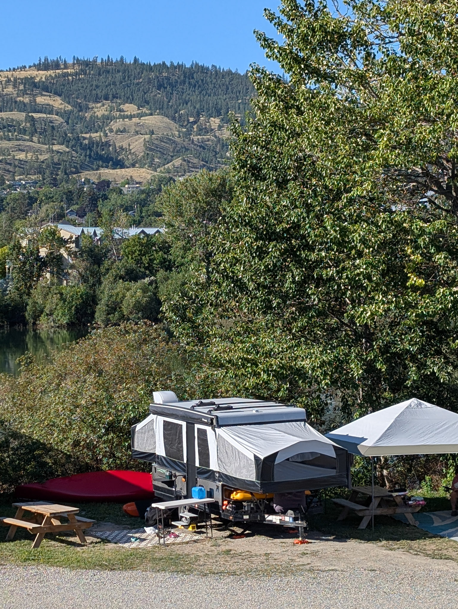 First day of our trip didn't exactly go to plan. Had breakfast on the ferry and started the 6 hour drive to Shuswap lake. But going over the Coquahalla there was a load POP from the engine and the truck immediately slowed from 100 to 60 km/h. Truck was still drivable but couldn't go above 80 km/h, we decided to slowly drive to Kamloops and found an RV park for the night. Ended up being an air intake pipe that came loose, it took a day to order the part but we eventually got on the road again. Didn't take many photos because was busy dealing with things but here are some from the ferry and one of RV park we stayed at.
